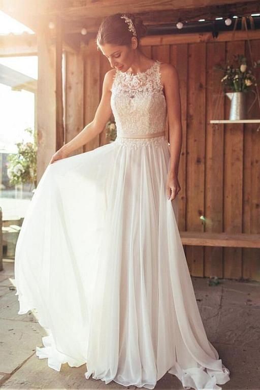 Ivory Beach Wedding Dress Lace Chiffon Skirt vestido de novia de playa