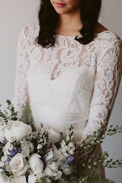 Lace Long Sleeves Boho Wedding Dresses Chiffon Skirt