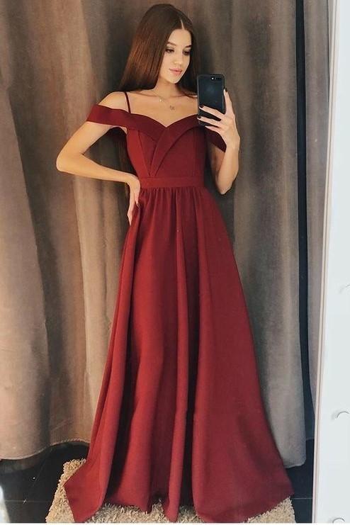 Simple Burgundy Evening Gown with Off-the-shoulder