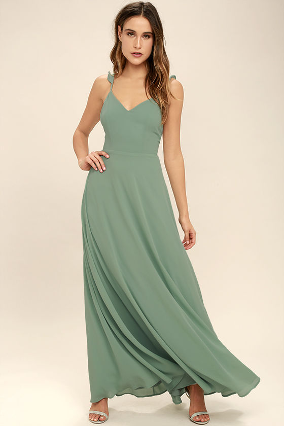 Sage Maxi Dresses Chiffon Long Bridesmaid Gown with Double Straps