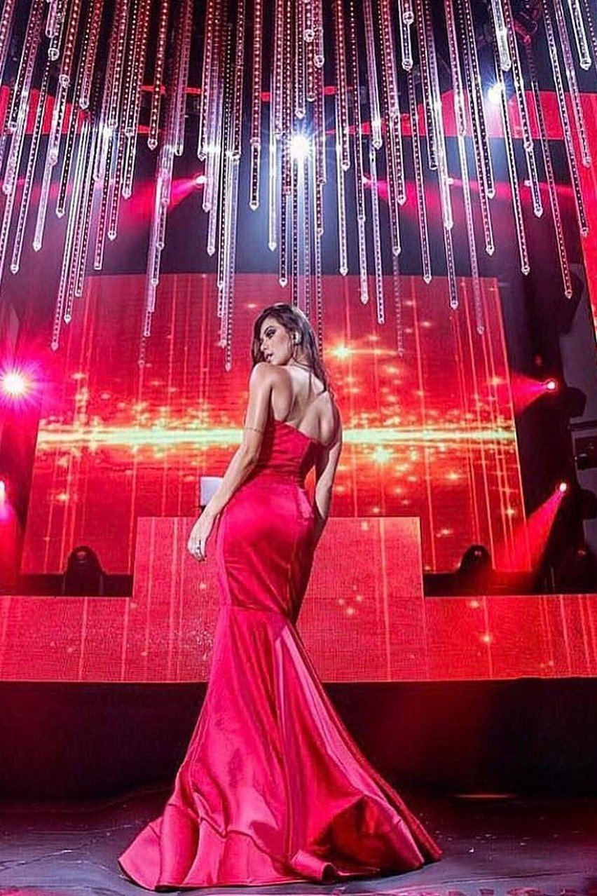 Strapless Satin Red Evening Dresses with Mermaid Skirt