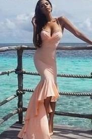 Blush Pink Chiffon Prom Dresses Fish Tail Flounced Skirt