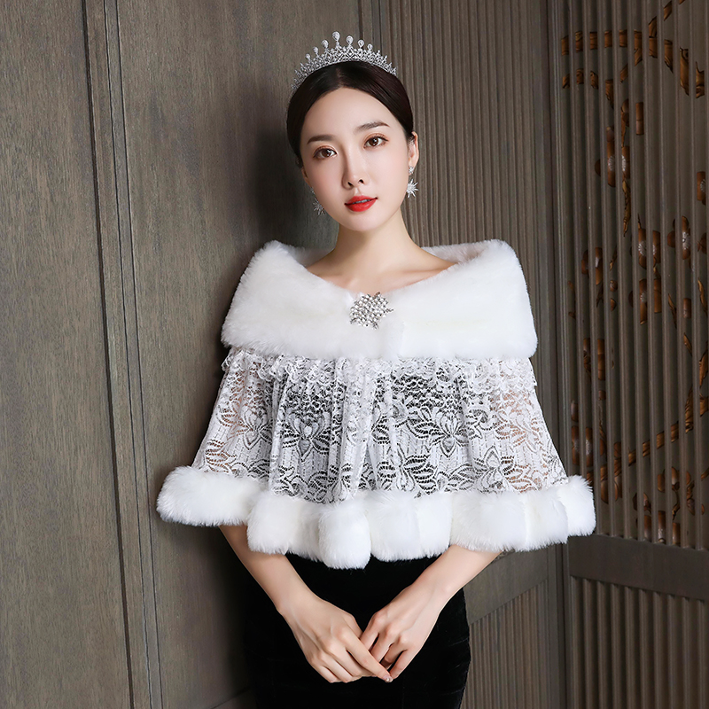 Lace Wedding Bolero Faux Fur Bridal Shawl Fashion Bridesmaid Brap Gift