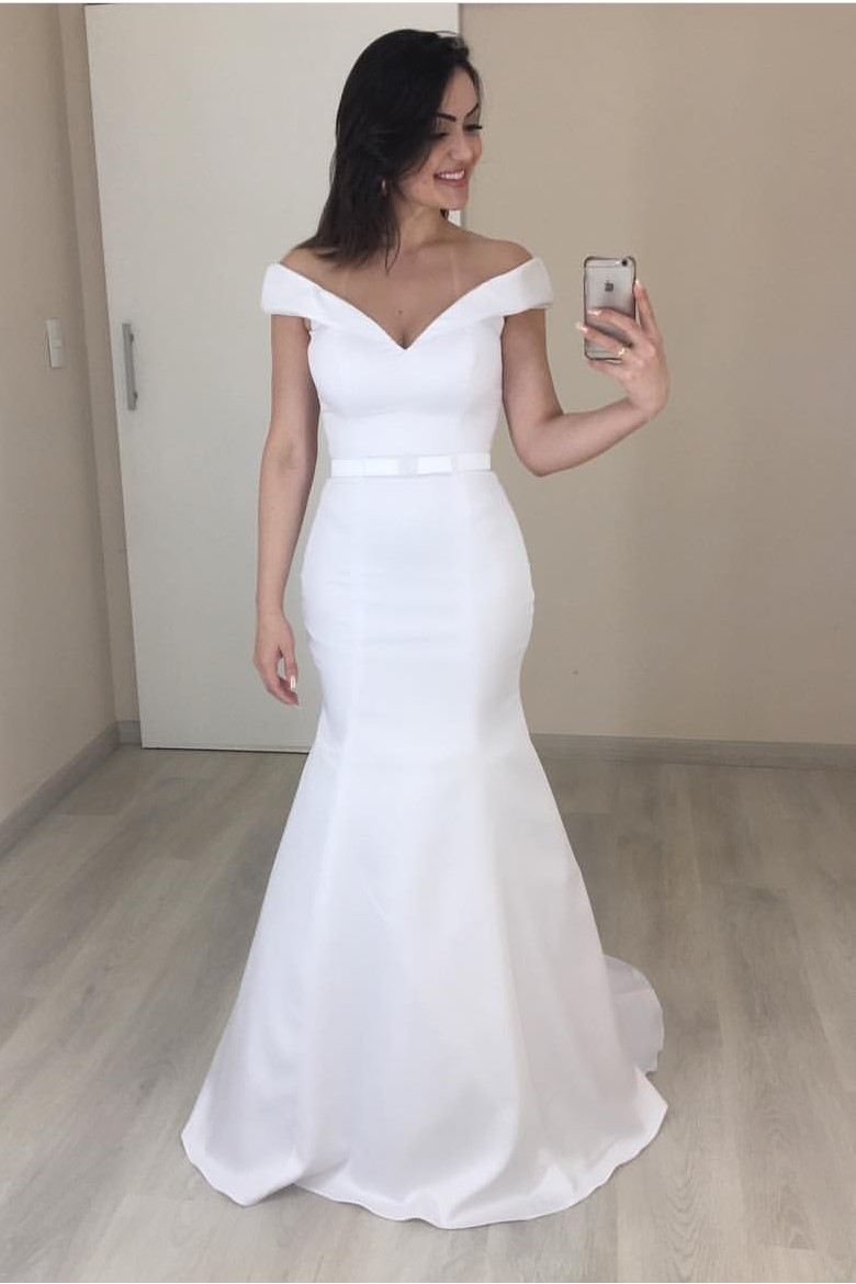 Simple Satin Mermaid Wedding Gown with Off-the-shoulder