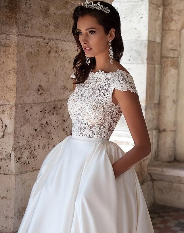 Lace&Satin Modest Wedding Dresses with Pockets