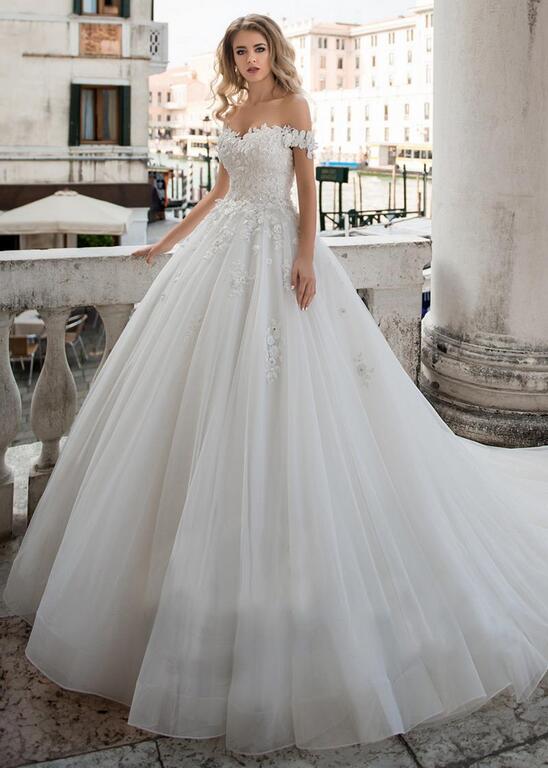 This princess gown features off-shoulder sleeves and a subtle sweetheart neckline for a highlighted princvess style. A full A-line skirt of layered tulle. This gown features a manageable train to maintain volume and weightlessness to the overall design, and lace-up back. It can be custom made to your exact measurements. *Colors may photograph differently under studio lighting. Custom size is recommended, totally free. If you can't find the color you want above, please write your color or your custom made measurements in the checkout step, or send us your color image and measurements through email. You can click Contact Us.
