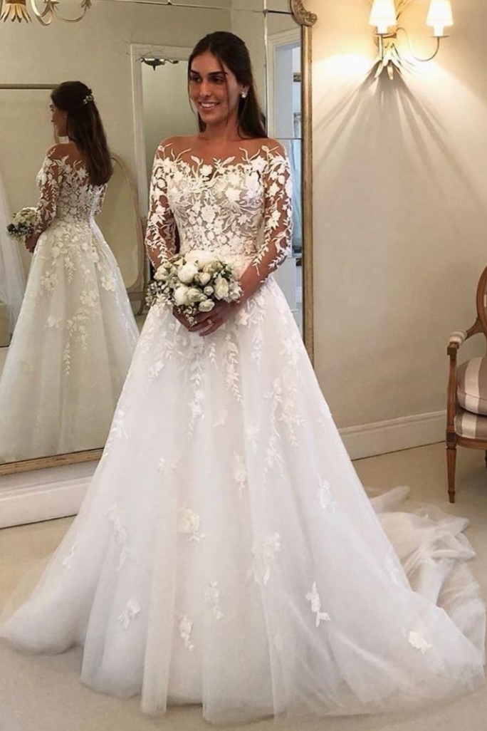 Transparent Lace Wedding Bridal Dress Long Sleeves