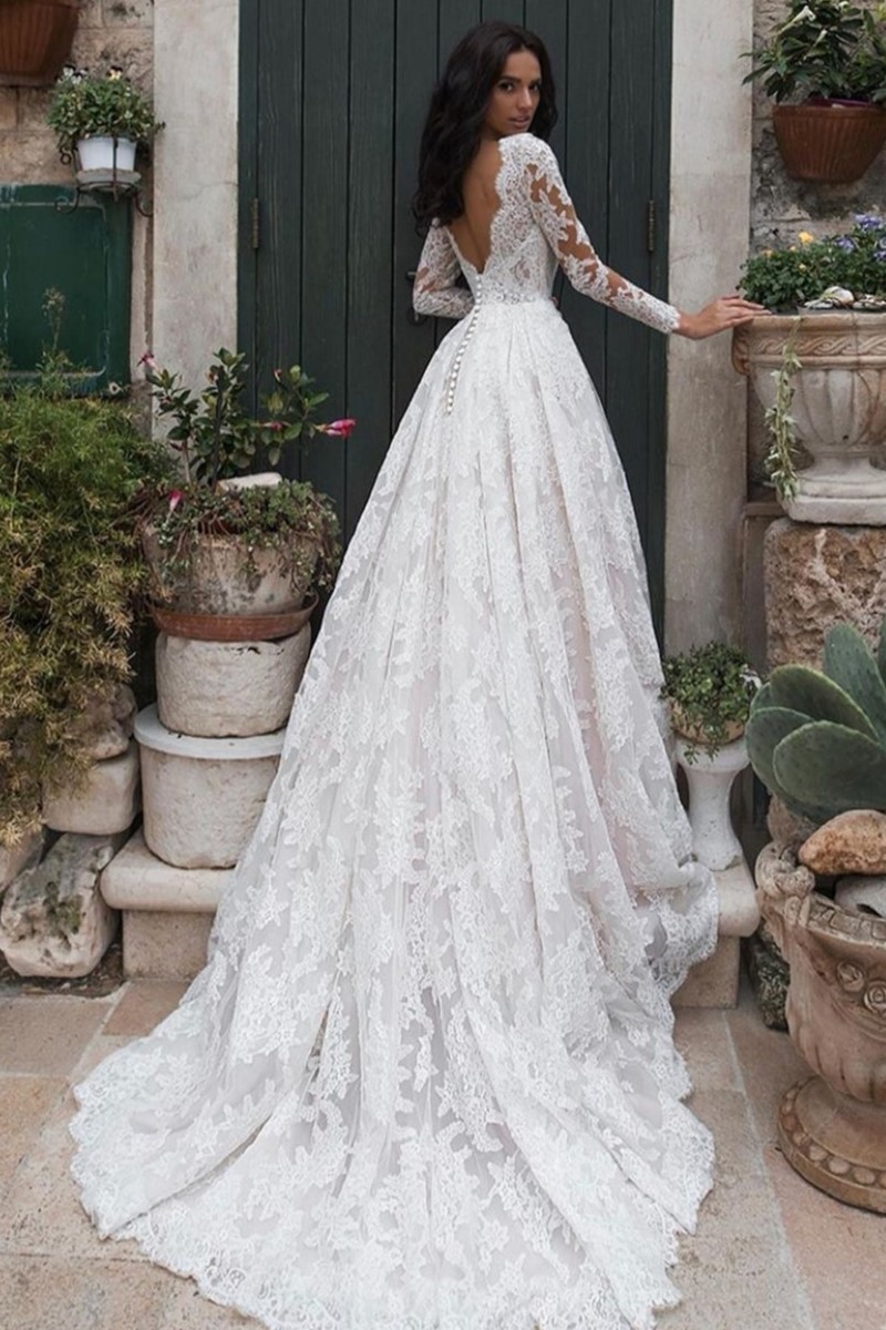 This magnificent bride dress features a boat neck with long sleeves, A-line skirt with full lace overlay, V back with zip up. It can be custom made to your exact measurements. *Colors may photograph differently under studio lighting. Custom size is recommended, totally free. If you can't find the color you want above, please write your color or your custom made measurements in the checkout step, or send us your color image and measurements through email. You can click Contact Us.