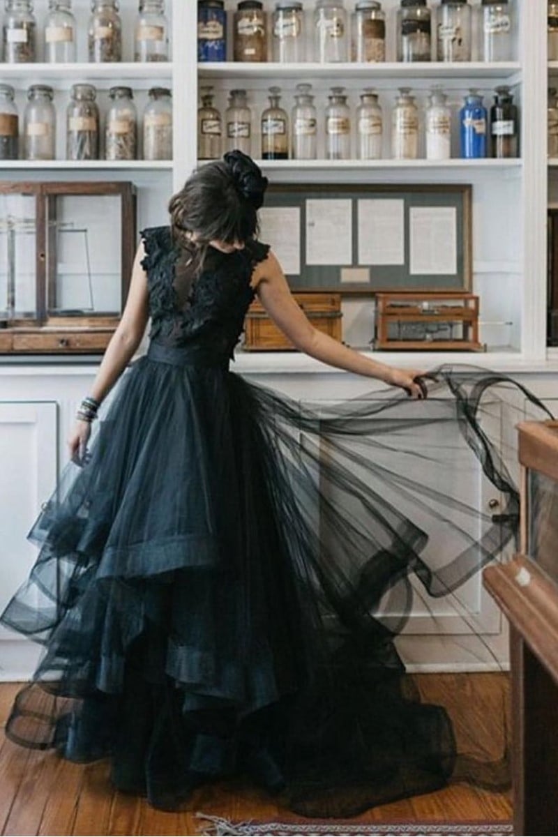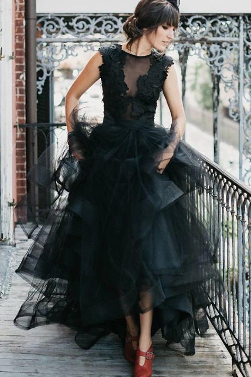 Glamour Black Tulle Bridal Gown with Layers Skirt