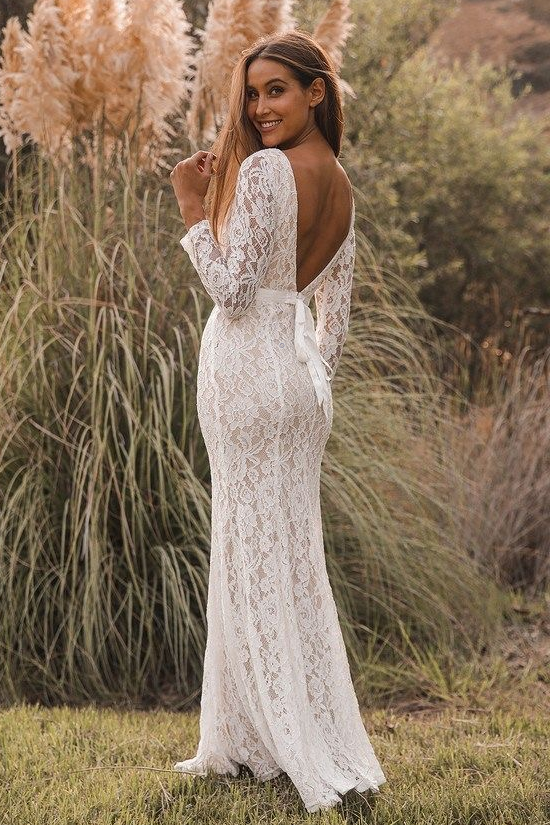 This elegant lace wedding gown features a boat neck with full sleeves. The V back with regular zip-up. It can be custom made to your exact measurements and more colors. *Colors may photograph differently under studio lighting. Custom size is recommended, totally free. If you can't find the color you want above, please write your color or your custom made measurements in the checkout step, or send us your color image and measurements through email. You can click Contact Us.