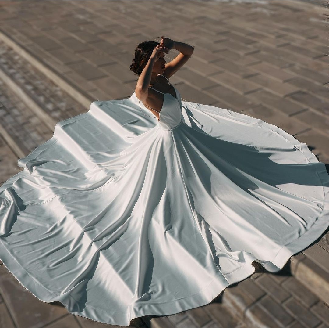This simple yet romantic bridal gown features a ruched plunging neckline with double straps. Sexy open back with invisible zipper closure. It can be custom made to your exact measurements and more colors. *Colors may photograph differently under studio lighting. Custom size is recommended, totally free. If you can't find the color you want above, please write your color or your custom made measurements in the checkout step, or send us your color image and measurements through email. You can click Contact Us.
