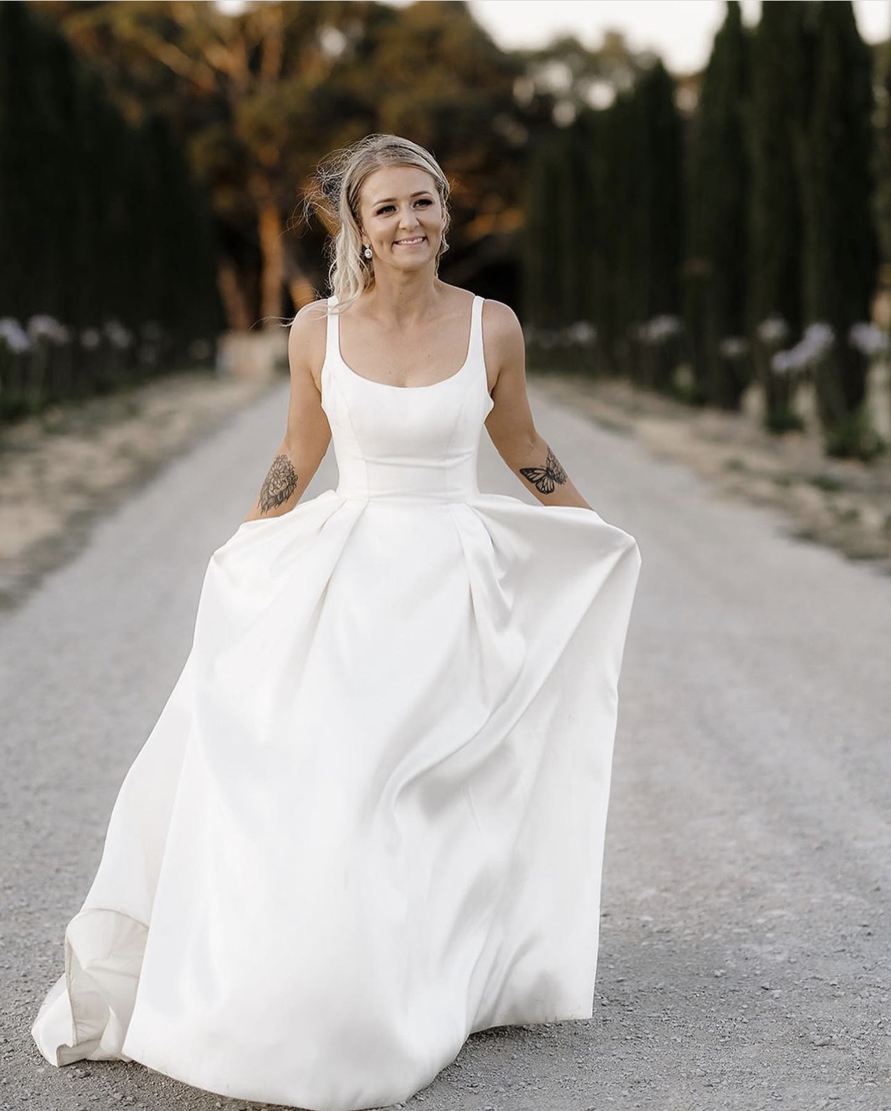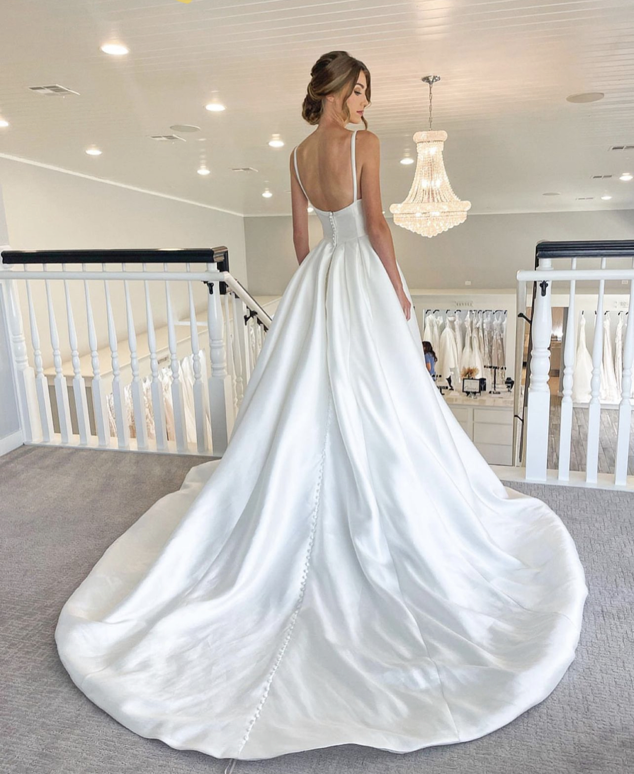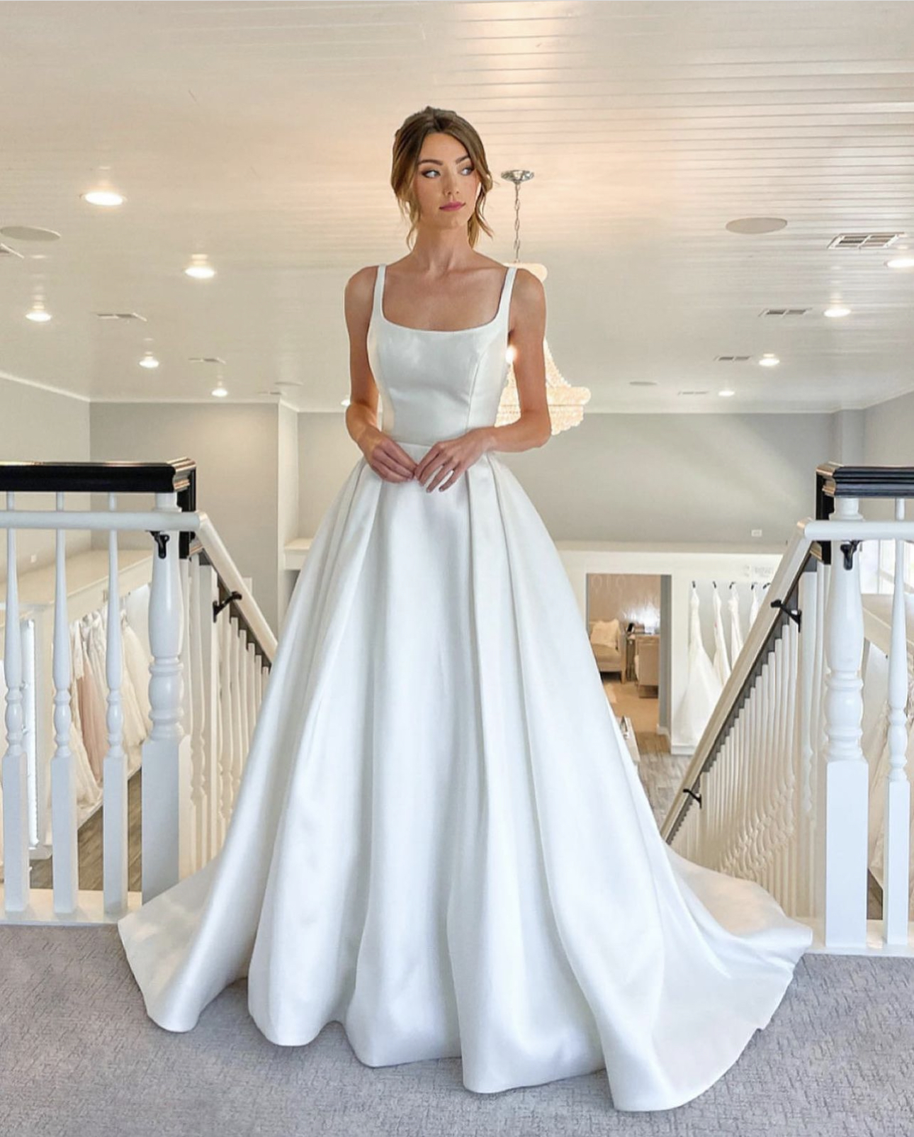 Classic Satin A-line Bridal Gown with Shoulder Straps