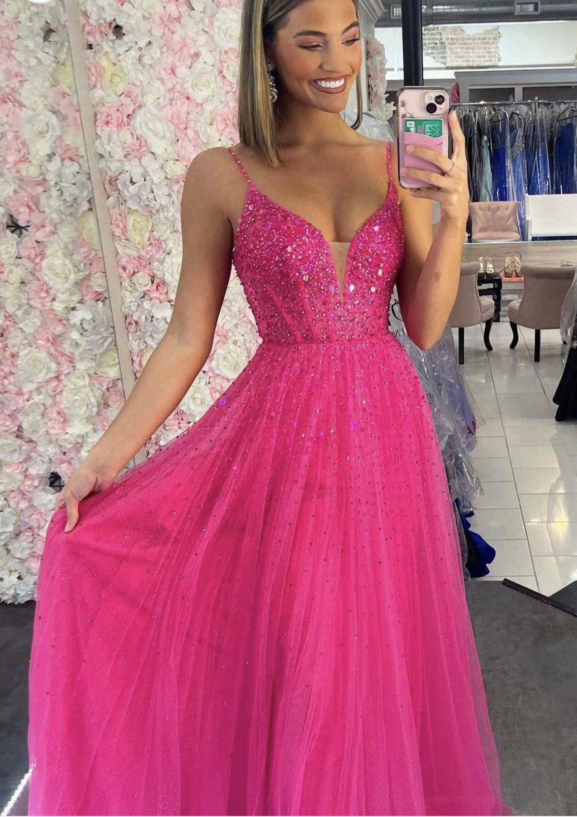 Tulle Fuchsia Evening Gown Beaded Bodice