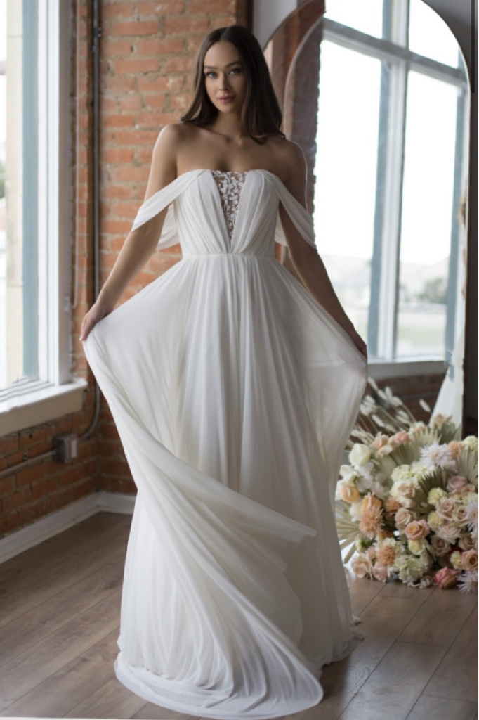 2024 Chiffon Wedding Gown with Off-the-shoulder vestido de novia de playa